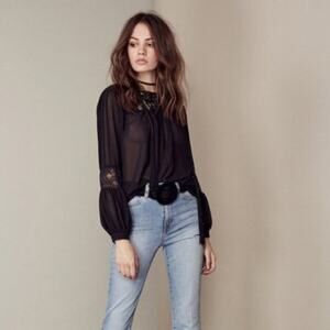 For Love & Lemons Black Sheer Long Sleeves Sacramento Blouse.