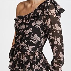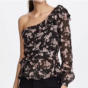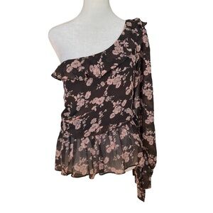 For love and lemons Theo one shoulder blouse. Chiffon material. Zipper side closure. Partially lined.