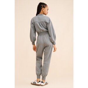 Sweatsuit inspired jumpsuit w/ a drawstring waist and half zip detail