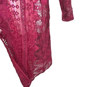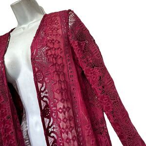 FOR LOVE & LEMONS burgundy crochet long duster cardigan
