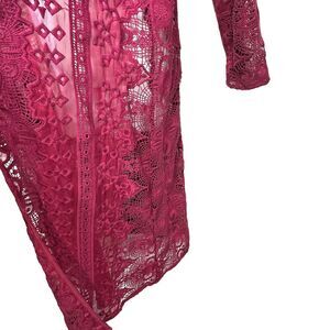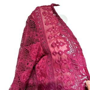 FOR LOVE & LEMONS burgundy crochet long duster cardigan OS