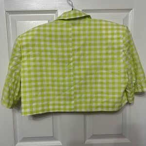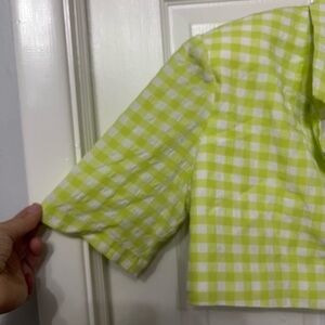 FOR LOVE & LEMONS maureen cropped gingham blazer top large , green white