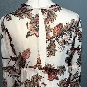 FOR LOVE and LEMONS Sheer Floral Ruffle Hem Tiered Sleeves Tassel Cuffs Dress S