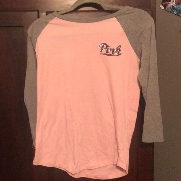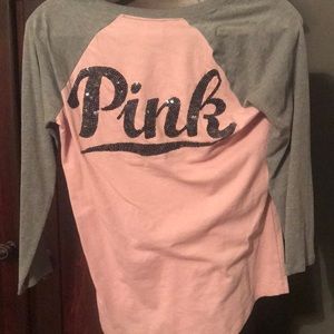 EXCELLENT CONDITION. WORN ONCE. Victoria’s Secret PINK baseball tee with sequins
