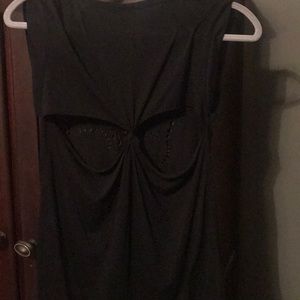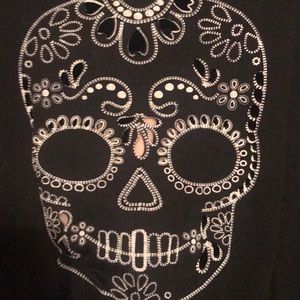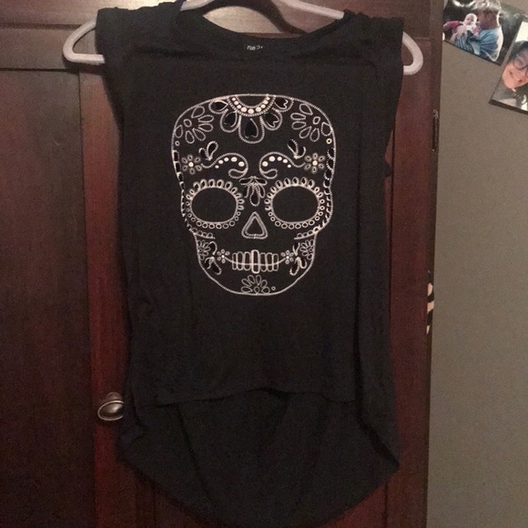 GOOD CONDITION. Thick strap black tank top. Skull on front with cut outs in front and back. From Rue 21. Size M