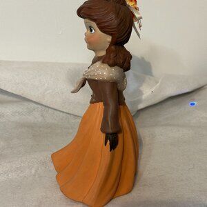 This charming ceramic doll stands 12 inches tall and has a base width of 5 1/2 inches, making her a delightful addition to any collection or a unique decorative piece. She is in very good condition, carefully preserved and ready to be showcased. She features: