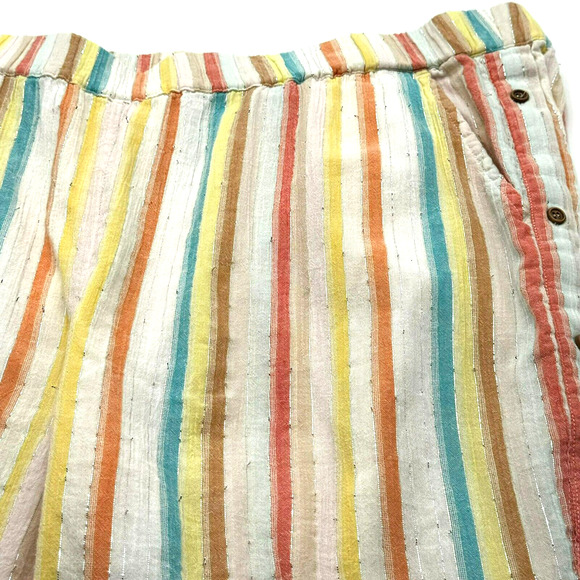 FOR THE REPUBLIC 2X Pastel Rainbow Stripe Metallic Boho Capri Pant Button Fringe