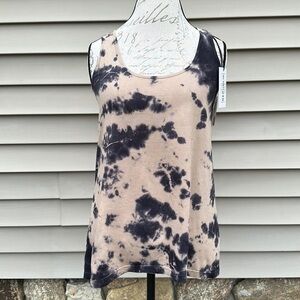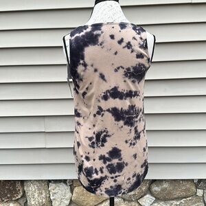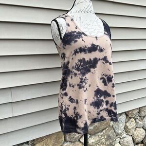 Tan tank with black tie dye print by FOR THE REPUBLIC DENIM.