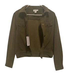 FOR THE REPUBLIC - Puff Shoulder Felted Cropped Jacket Womens Size M Olive