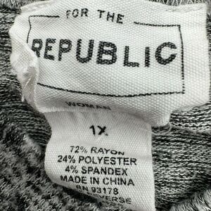 FOR THE REPUBLIC Women's 1X Gray Heart 3/4 Sleeve Tunic Top Shirt Sweater V-neck
