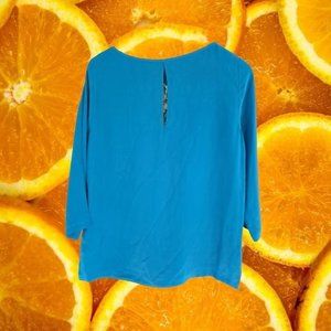 FOR all 7 Mankind Blouse Floral Front Solid Blue Back Size S