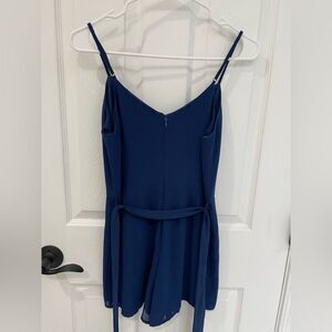 FORA Royal Navy Blue Belted Tie V Neck Romper Women’s Size S