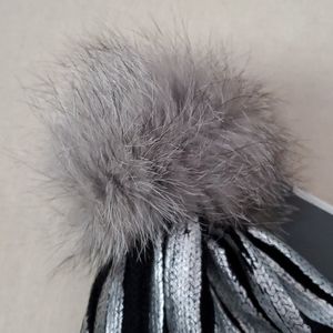 FORAVI pom-pom hat, silver and black hat with grey fur pom-pom. NEW