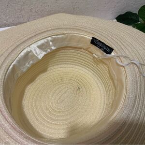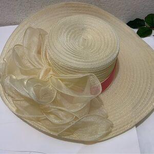 FORBUSITE Yellow and pink ribbon Lady Dress Hat Straw