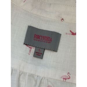 Great condition FORCYNTHIA Swimwear white linen tunic coverup with flamingos. Deep front pockets.