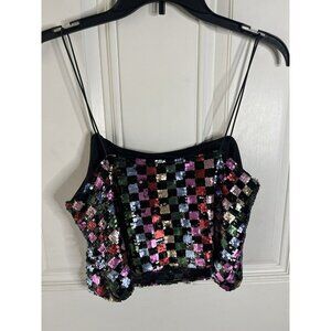 FORE NEW Celeste Checked Colorful Sequin Crop Top Size Large Women’s