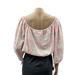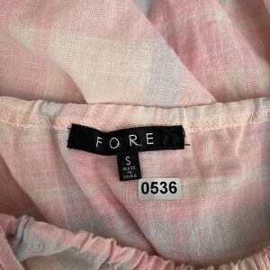 FORE Pink White Plaid Off-Shoulder Tunic Blouse Cropped Womens S