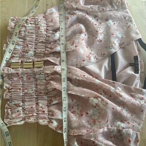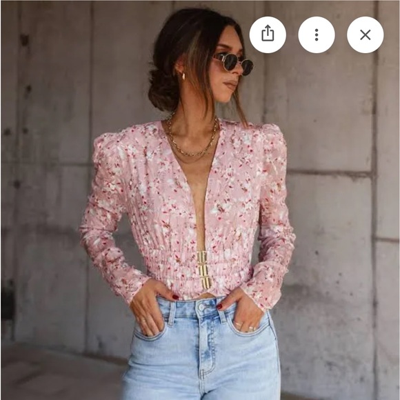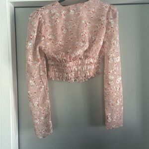 FORE peach floral deep V cropped, long sleeve blouse size small