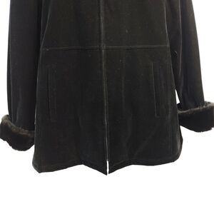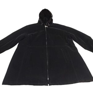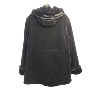 FORECASTER SPORT Black Velvet Parka Coat Faux Fur Trim Hooded SZ L