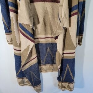 FOREIGN EXCHANGE Women's Southwestern Long Waterfall Hooded Cardigan Sz Medium, Long Line.