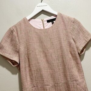 FOREST LILY Women’s Pink Short Sleeve Tweed Dress Fringe Hem Lined Lurex Size 4