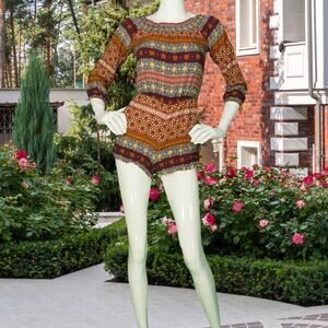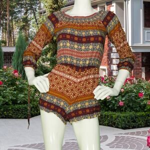 FOREVER 21 AUTUMN Boho Tribal Romper Shorts Top S