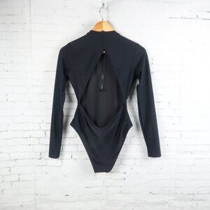 BLACK LONG SLEEVE ZIP UP SCUBA STYLE BODYSUIT WITH BACK CUT OUT SIZE MEDIUM BY FOREVER 21 NEW WITH OUT TAGS
