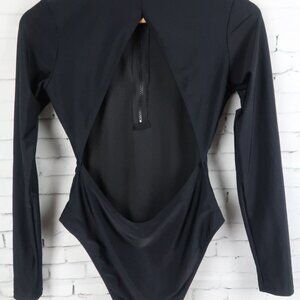 FOREVER 21 BLACK LONG SLEEVE ZIP UP BODYSUIT WITH BACK CUT OUT SIZE MEDIUM NWOT
