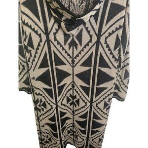 FOREVER 21 BLACK/BEIGE HOODED OPEN FRONT MAXI CARDIGAN SIZE: S