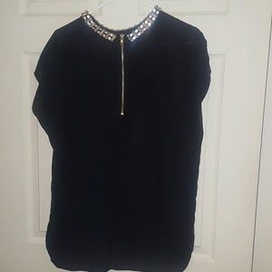 FOREVER 21 BLK BLOUSE WITH DIAMOND NECKLINE