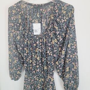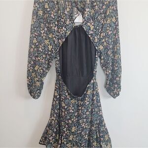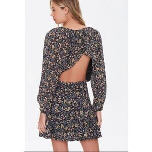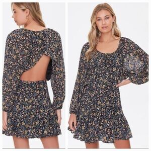FOREVER 21 Black Floral Print Cutout Bohemian Dress Size Small NWT