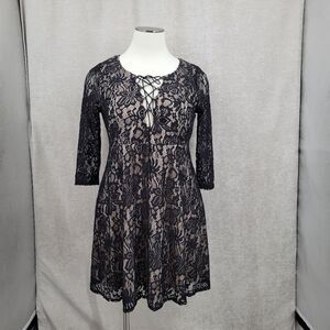 FOREVER 21 Black Lace Dress Long Sleeves See Through Back Women's Plus Size 2X