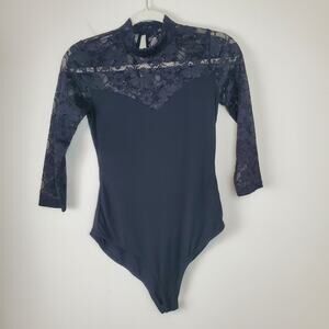 FOREVER 21 Black Lace Heart Shaped Bodice Bodysuit