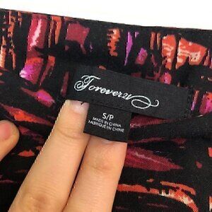 Forever 21 size small black, pink / purple, red, orange, and cream ivory geometric striped aztec tribal inspired high waisted rise shorts. Side zipper closure. 100% rayon. No flaws found; minor unnoticeable runs/snags possible due to nature of material.