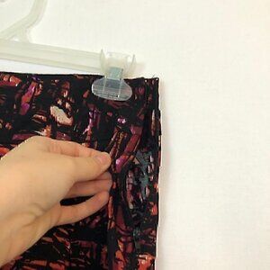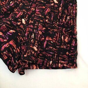 Forever 21 size small black, pink / purple, red, orange, and cream ivory geometric striped aztec tribal inspired high waisted rise shorts. Side zipper closure. 100% rayon. No flaws found; minor unnoticeable runs/snags possible due to nature of material.