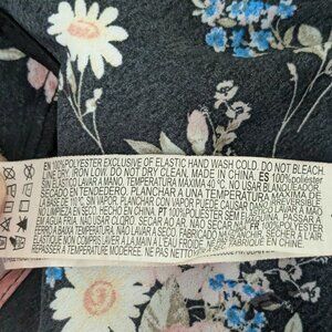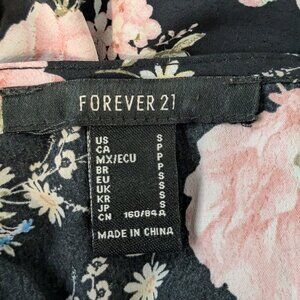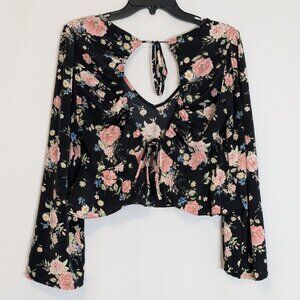 FOREVER 21 Black/Pink Floral V-Neck Long Sleeve Ruffle Crop Top; Size S