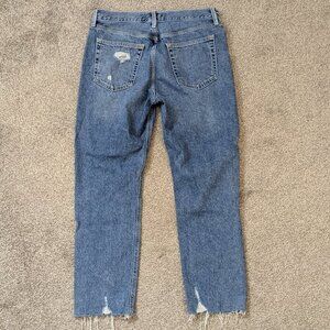 FOREVER 21 Blue Denim High-Rise Distressed Straight Leg Jeans; Size 27