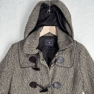 FOREVER 21 Brown Herringbone Toggle Hook & Loop Winter Coat Womens Size Small