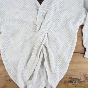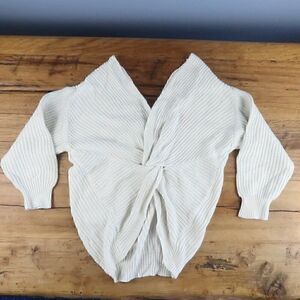CREAM DEEP V TWIST BACK 3/4 SLEEVE KNIT SWEATER SIZE MEDIUM PRE OWNED NO FLAWS