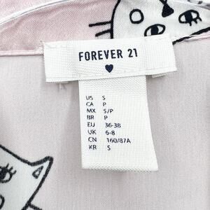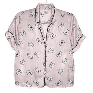 FOREVER 21 Cat Print Pajama Shirt Shorts Set Satin Lightweight Pink Size Small