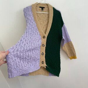 FOREVER 21 Colorblock Cardigan Sweater Lilac Lavender Green Multi Button Long M