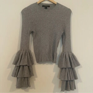 ☀️FOREVER 21 Contemporary Tiered Ruffle Bell Sleeve Ribbed Gray Sweater