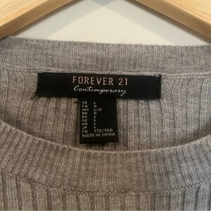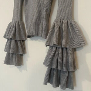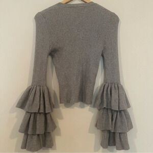 FOREVER 21 Contemporary Tiered Ruffle Bell Sleeve Ribbed Gray Sweater