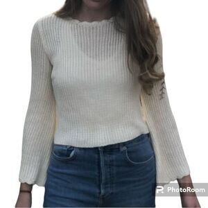 FOREVER 21 Cream Bell Sleeve Cropped Knit Sweater Size Medium NWT