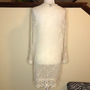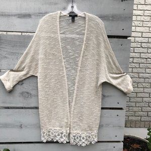 FOREVER 21 Cream Coastal Lightweight Open Crochet Style Lacey Longline Cardigan