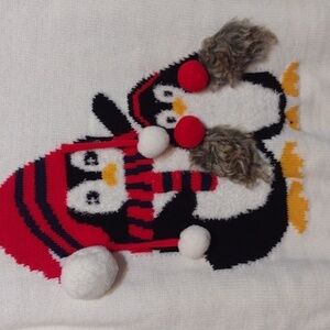 it is in pre-owned condition but it is in good shape it doesn't have any stains it does have a mark by the foot of the penguin I took a picture of it it doesn't appear to be a hole I think it's the way it stitched but I just want to throw it out there it it is absolutely adorable with this little penguins for Christmas have a wonderful day and has always I love offers d51 it is like a different shade of white I wouldn't call it a bright white maybe more of a cream or a dull White