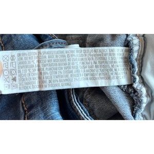 Features: Distressed, triple button closure and zipper, 5 pockets, high rise, stretch, raw hem