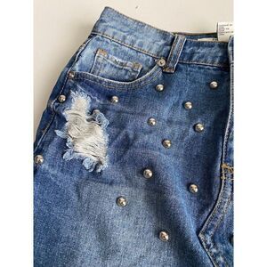 FOREVER 21 Denim Jean Studded Mini Skirt Size S Small Distressed Rocker