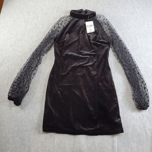 FOREVER 21 Dress Womens Medium Black Party/Cocktail Velvet Long Sleeve Mock Neck