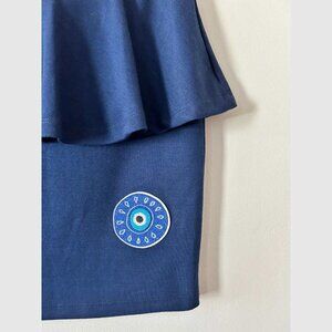 Add a touch of elegance and protection to your wardrobe with this Forever 21 Evil Eye Mini Skirt in size small. Featuring an eye-catching evil eye design and a chic ruffle detail, this versatile piece can be dressed up or down for any occasion.